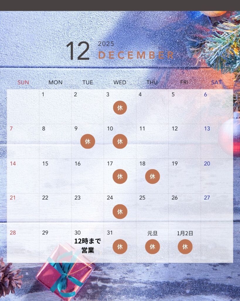 12月店休日のお知らせ 2025 12/01 お知らせ 2025年12月1日 2025年12月の店休日をお知らせさせていただきます。 お知らせ スライダー よかったらシェアしてね! URLをコピーしました! URLをコピーしました! 【臨時】本日11月30日(日)は13時~15時の間は休憩させていただきます。15時より再開 この記事を書いた人 NOBLE TREE COFFEE 関連記事 【臨時】本日11月30日(日)は13時~15時の間は休憩させていただきます。15時より再開 2025年11月30日 【木曜日更新】今週のドリップコーヒー(11月27日~) 2025年11月27日 【木曜日更新】今週のドリップコーヒー(11月20日~) 2025年11月20日 【木曜日更新】今週のドリップコーヒー(11月13日~) 2025年11月14日 【木曜日更新】今週のドリップコーヒー(11月6日~) 2025年11月6日 11月新商品:第2弾リリースのお知らせ 2025年11月2日 11月店休日のお知らせ(変則営業ございます) 2025年11月1日 11月新商品:第1弾リリースのお知らせ 2025年11月1日
